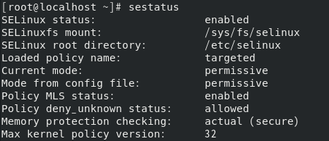 root에서 sestatus로 확인해본결과 enforcing이다.