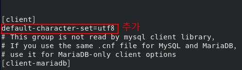 [root@localhost ~]# vi /etc/my.cnf.d/mariadb-server.cnf