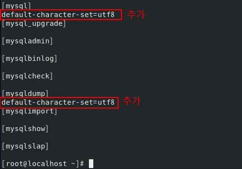 [root@localhost ~]# vi /etc/my.cnf.d/client.cnf
