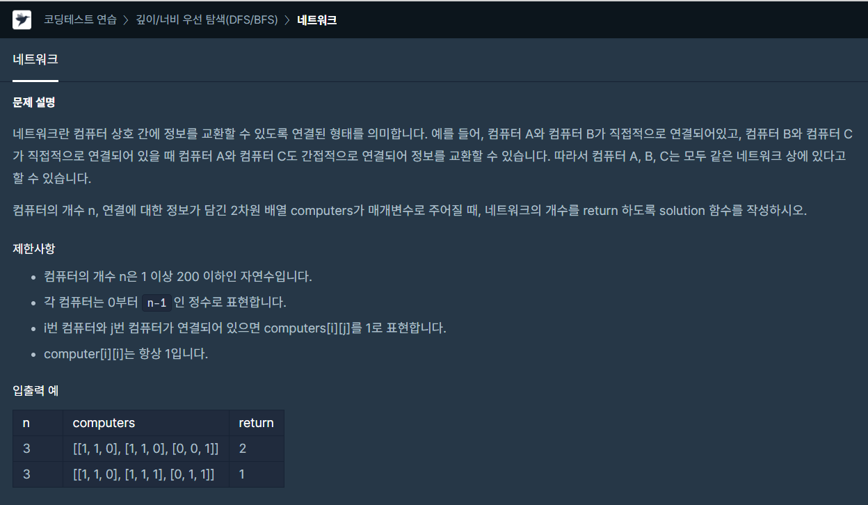 프로그래머스 코테 연습 : 네트워크 [C++] DFS/BFS 본문