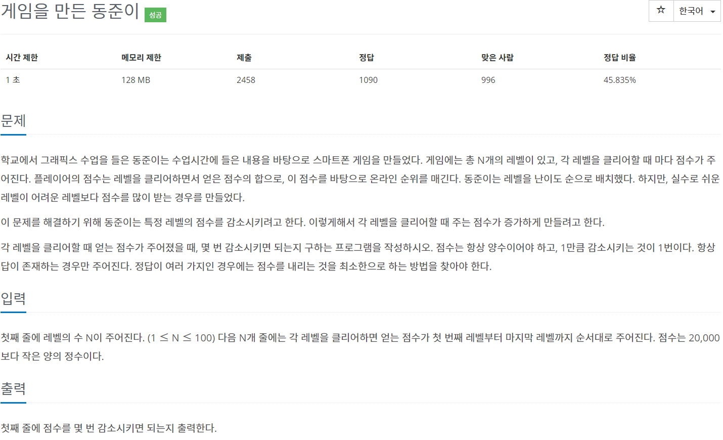 [C++] 백준 2847번: 게임을 만든 동준이 본문