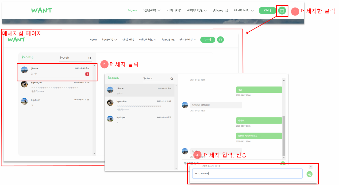 - message_content_list.jsp : 메세지 내용 부분 html (메세지함 페이지에서 메세지 리스트 중 하나가 클릭되면 삽입됨)