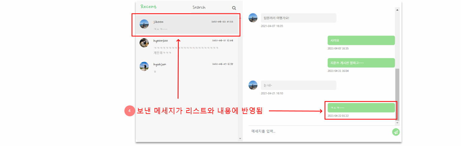 다만, 새로운 메세지가 왔을 때 실시간으로 바로 반영이 되지 않고, 새로고침이 실행될때 반영이 되기때문에