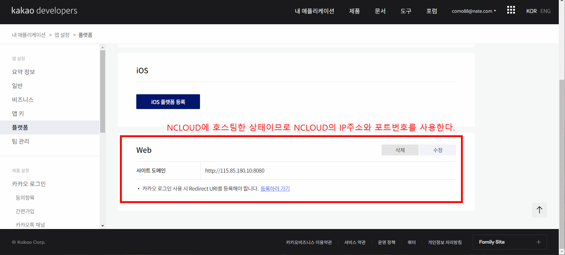역시나 NCLOUD 에 호스팅한 이후 이므로