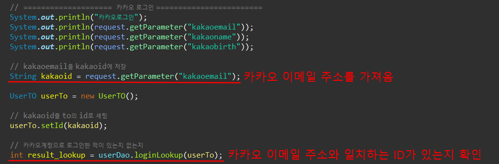 String kakaoid = request.getParameter("kakaoemail");