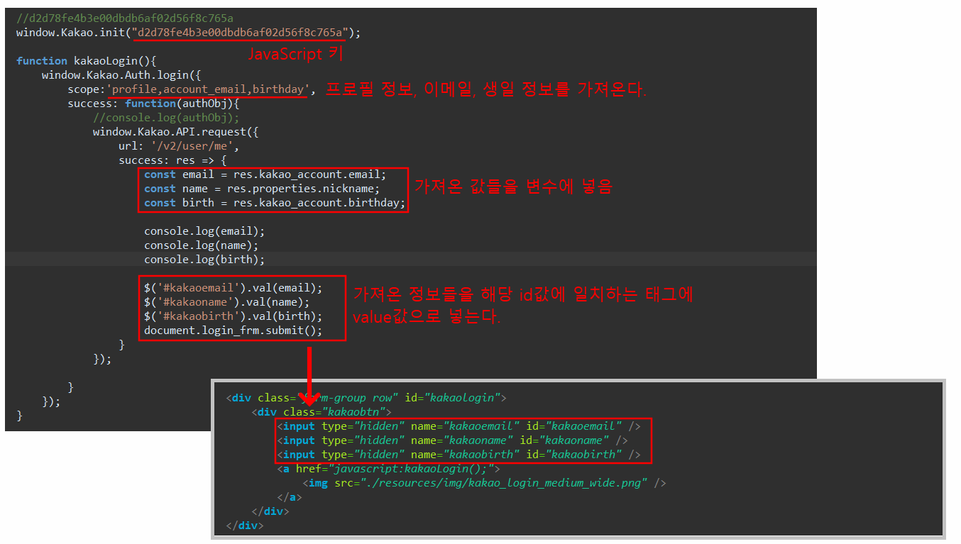 이 코드는 kakao developer에 이렇게 쓰라고 다 나와있는 것을 가져와서 나에게 맞게 바꾼것이다.