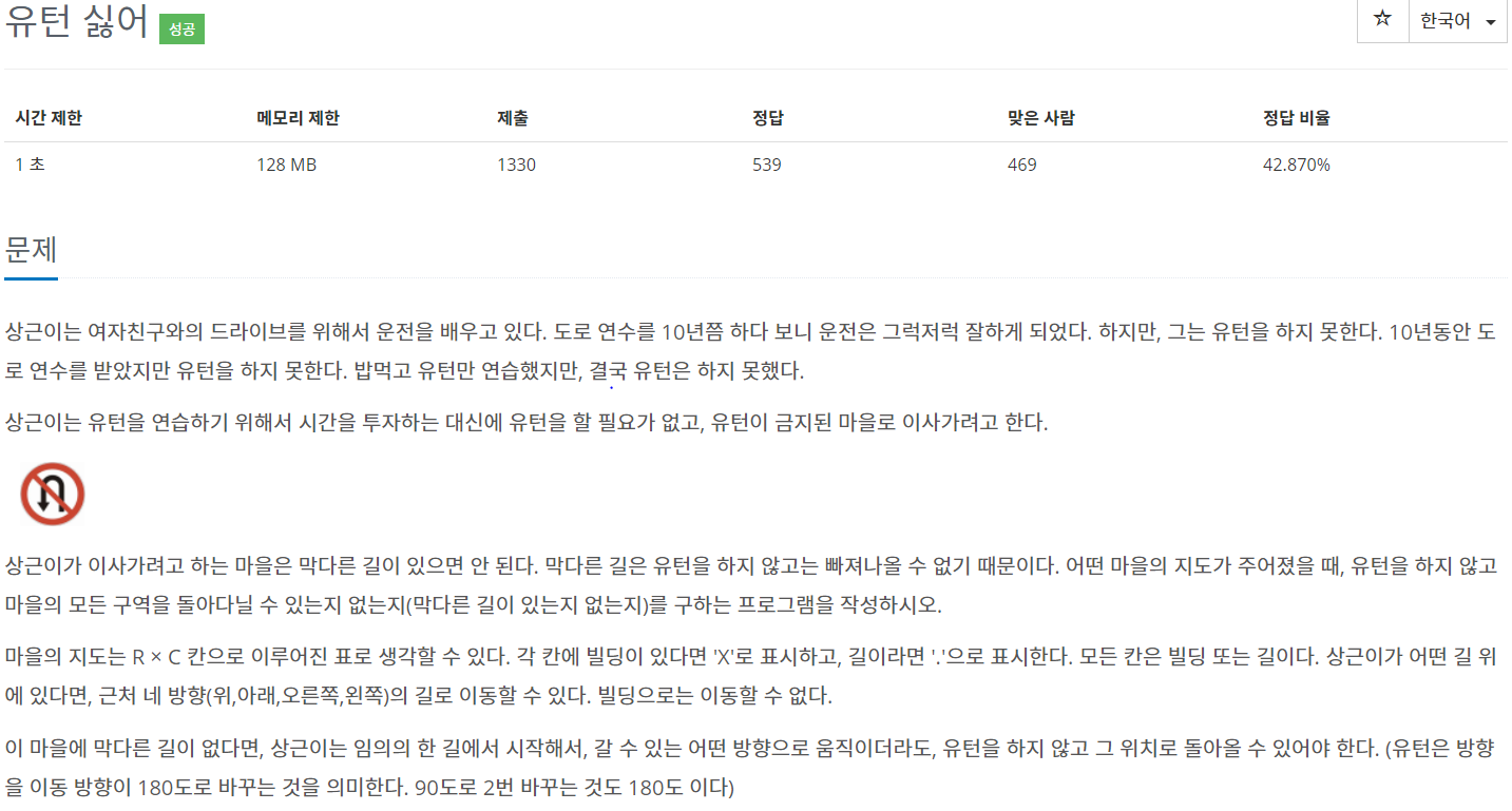 break; // 막다른 길을 발견했으니 나머지 볼 필요 없이 반복문을 나감