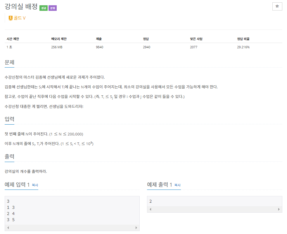 - 만약 어떤 강의가 pq의 top에 있는 가장 빨리 끝나는 강의보다 시작시간이 같거나 늦으면 pop 하고 빠르면 pop하지 않는다.