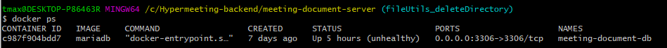 - MYSQL_DATABASE: meeting_document란 이름의 데이터베이스 생성
