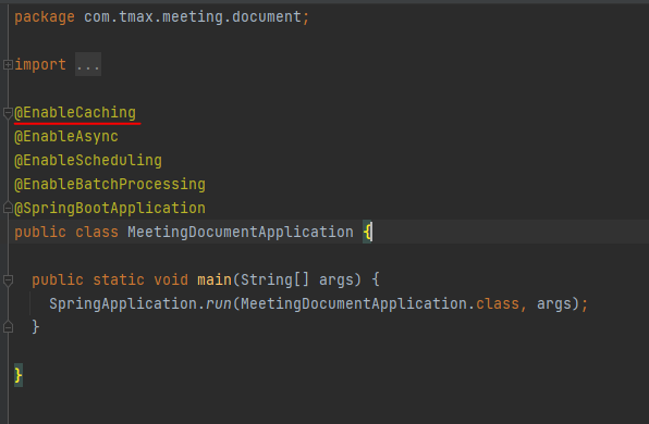 가장먼저 main 클래스에 @EnableCaching 을 추가한다.