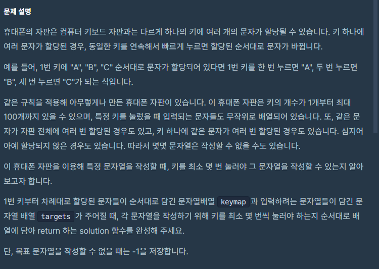 프로그래머스 level1 : 대충 만든 자판 - JAVA 본문