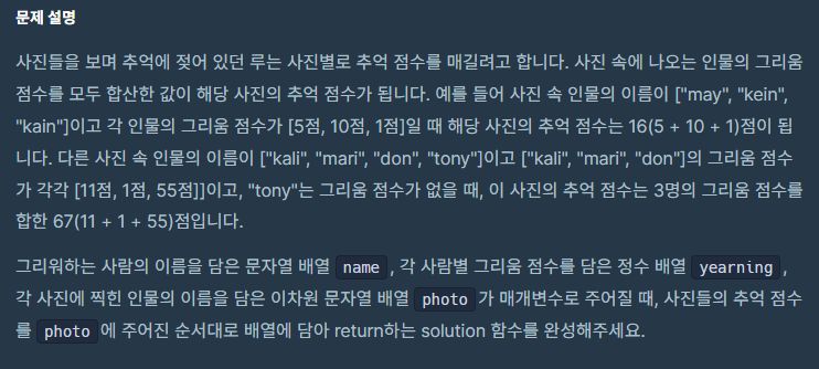 프로그래머스 level1 : 추억 점수 - Java 본문