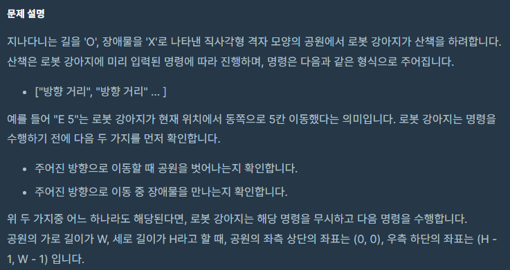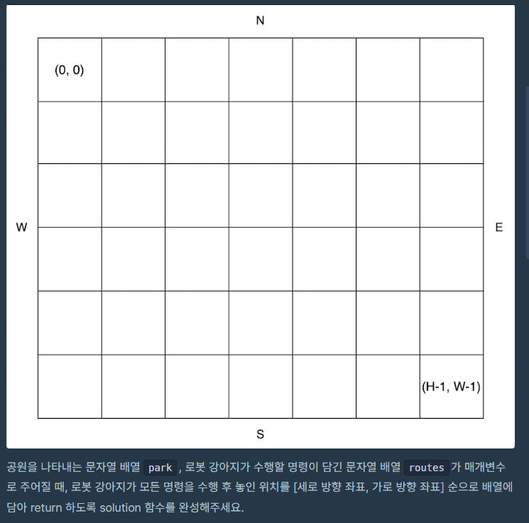 프로그래머스 level1 : 공원 산책 - Java 본문