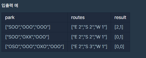 public int[] solution(String[] park, String[] routes) {