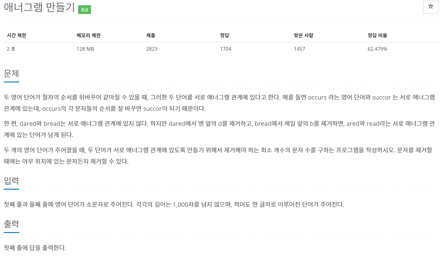 따라서 두 단어에 들어가는 알파벳의 갯수를 각각 저장할 알파벳 배열 두개를 사용하여