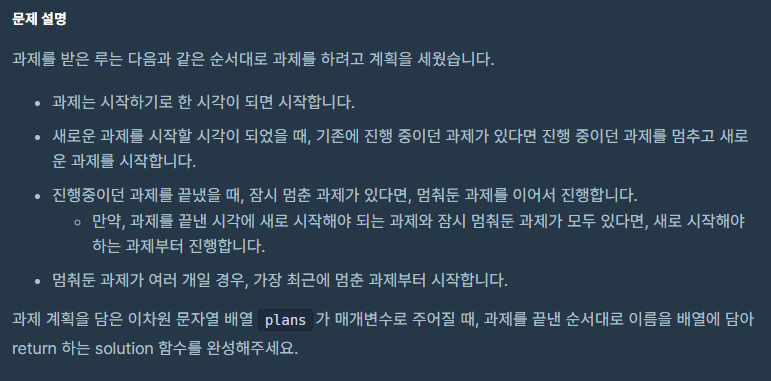 프로그래머스 level2 : 과제 진행하기 - Java 본문