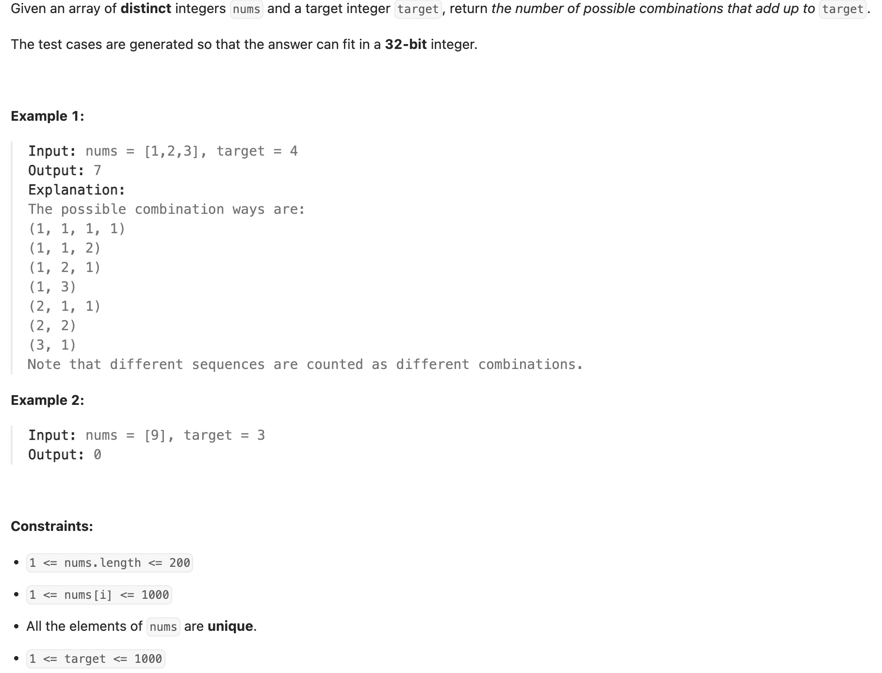 public int combinationSum4(int[] nums, int target) {