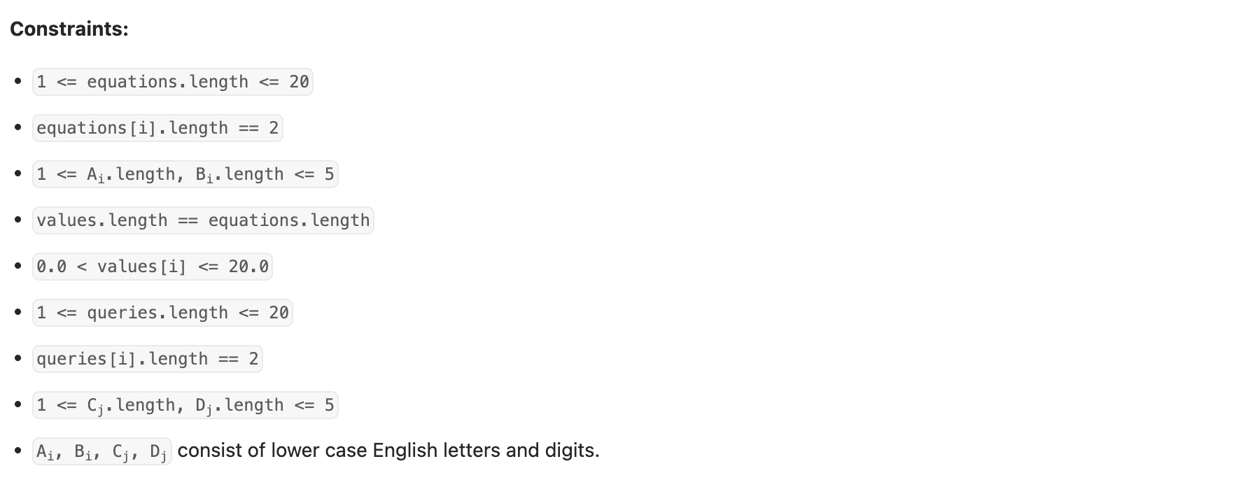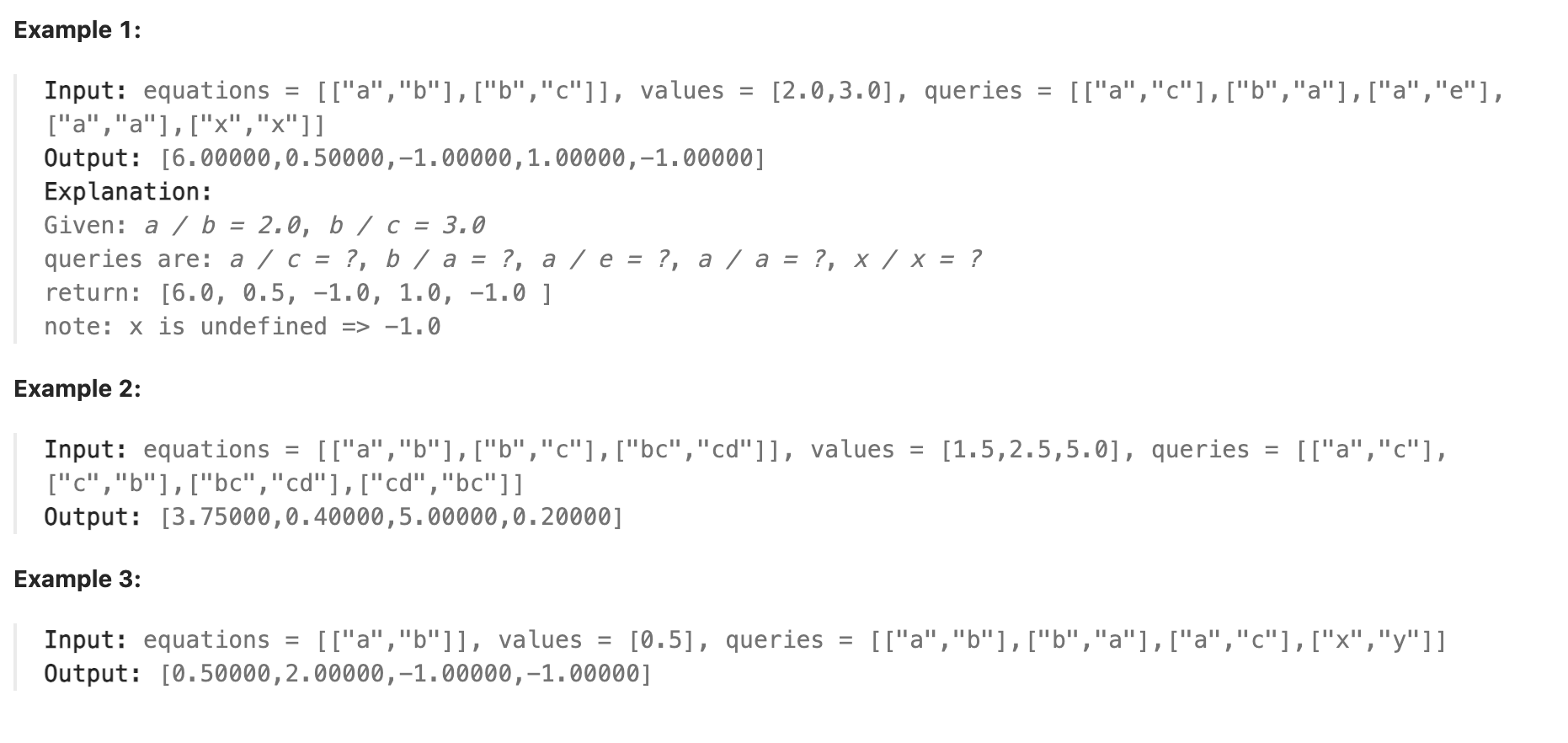 public double[] calcEquation(List<List<String>> equations, double[] values, List<List<String>> queries) {
