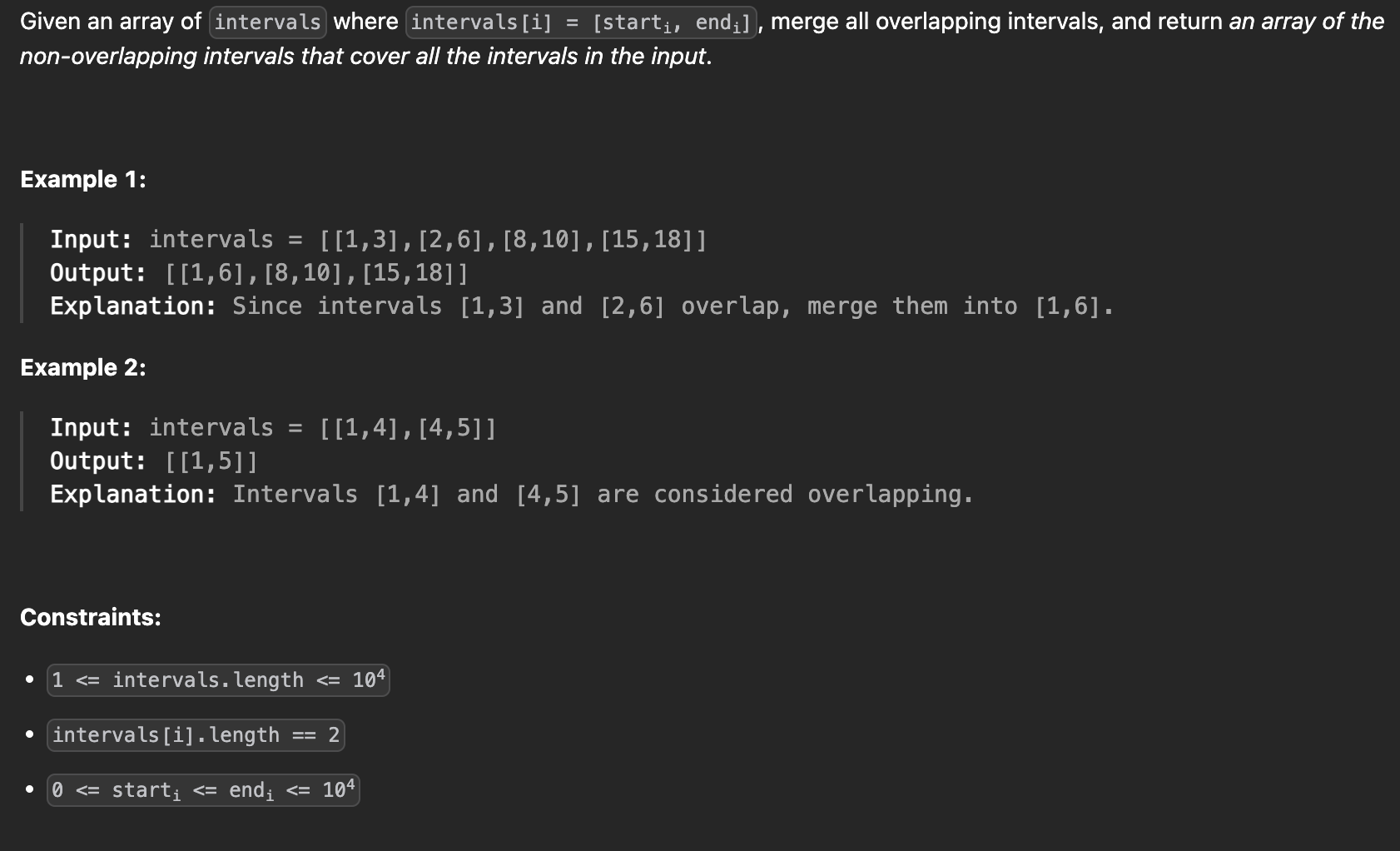 합치는 과정을 잘하려면 초기에 간격의 시작점을 기준으로 오름차순 정렬을 하고 합치기를 시작해야한다.