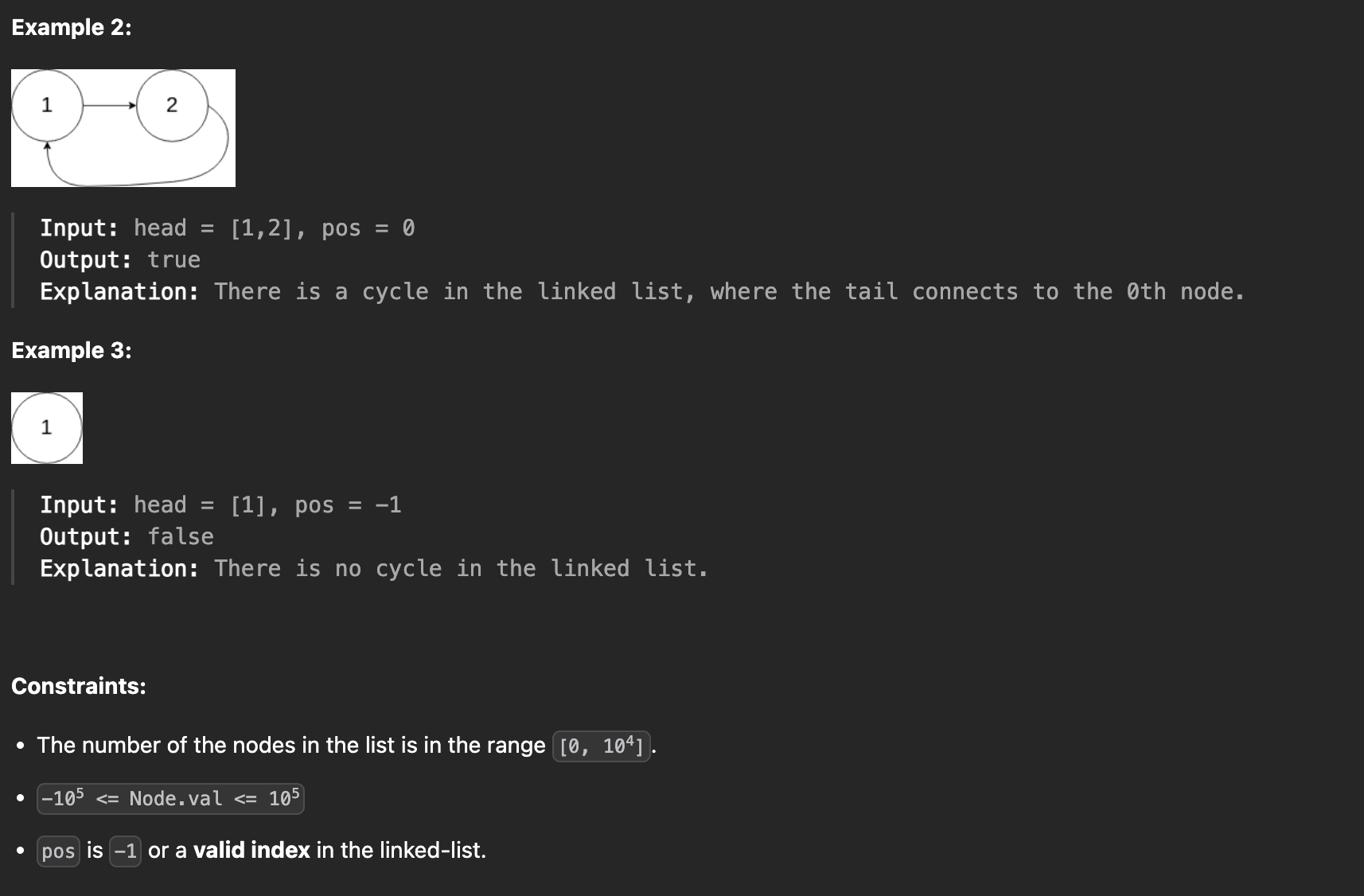 LinkedList 내에 사이클이 존재하는지 확인하는 문제다.