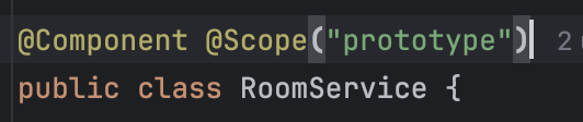 그런 스코프의 경우엔 아래 예시처럼 @Scope를 사용해서 직접 원하는 스코프를 써주면 된다.