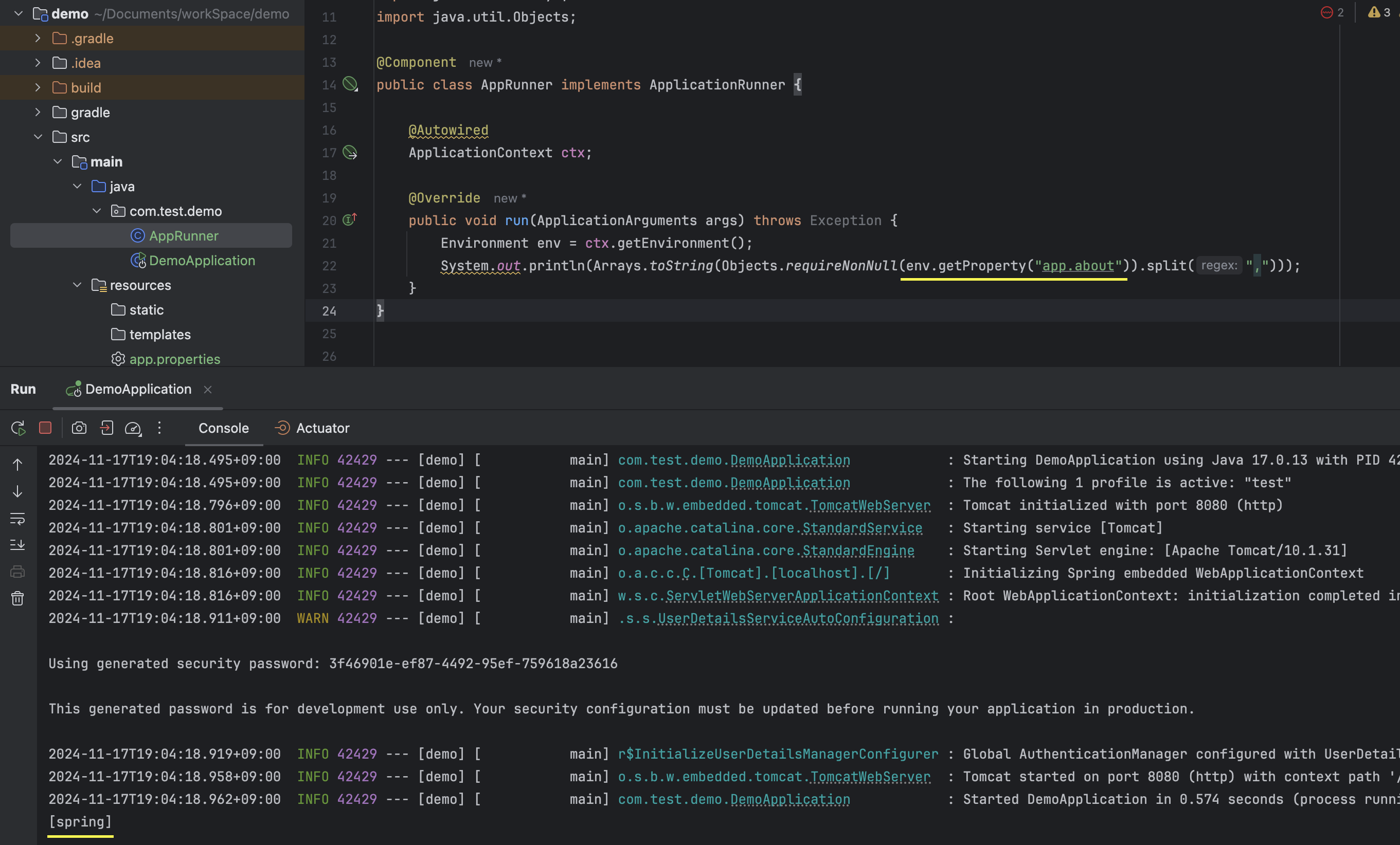 public class AppRunner implements ApplicationRunner {