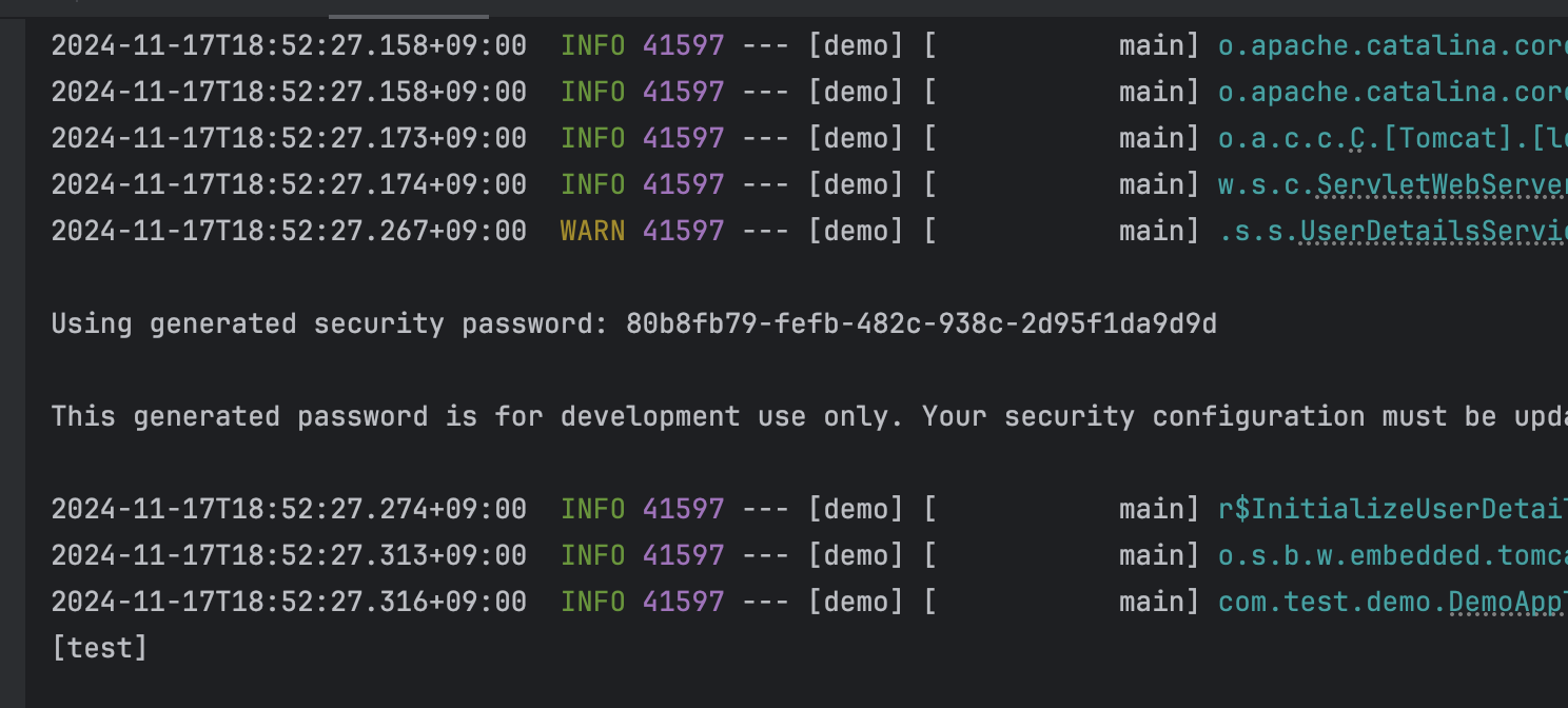 위처럼 내가 설정해둔 값인 "test" 가 찍힌다.