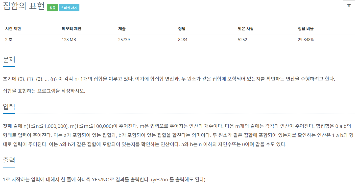 //집합의 크기가 큰 쪽으로 합쳐짐