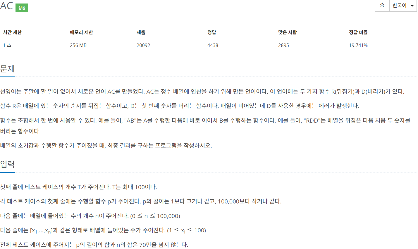 백준 5430번: AC 본문