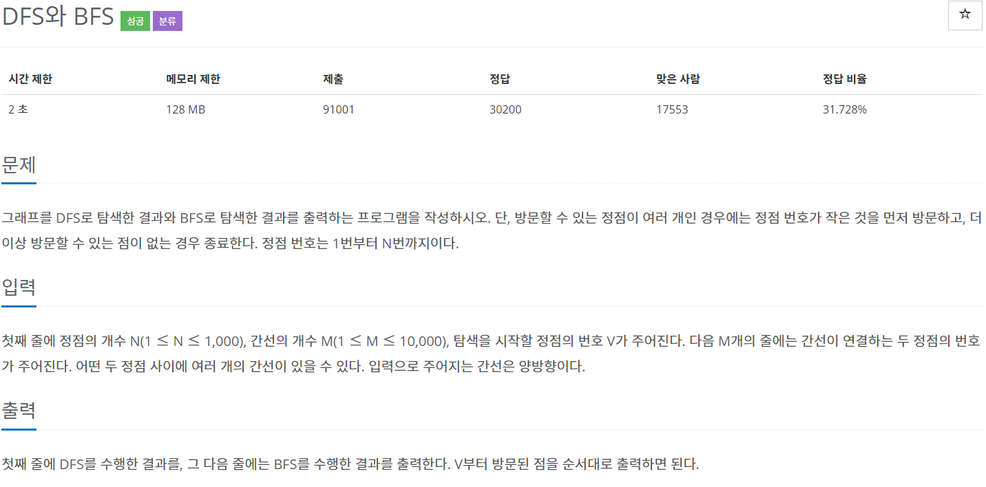 문제 링크입니다: https://www.acmicpc.net/problem/1260 자료구조 시간에서 다루었던 BFS(Breadth First Search)와 DFS(Depth First Search)를 복습할 겸 풀어봤던 문제였습니다. 실제로 BFS와 DFS는 자주 다루어..