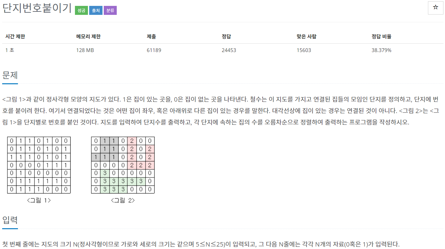 1. 입력받은 N*N을 돌면서 1이고 방문하지 않은 곳일 경우 DFS or BFS함수를 호출한다.