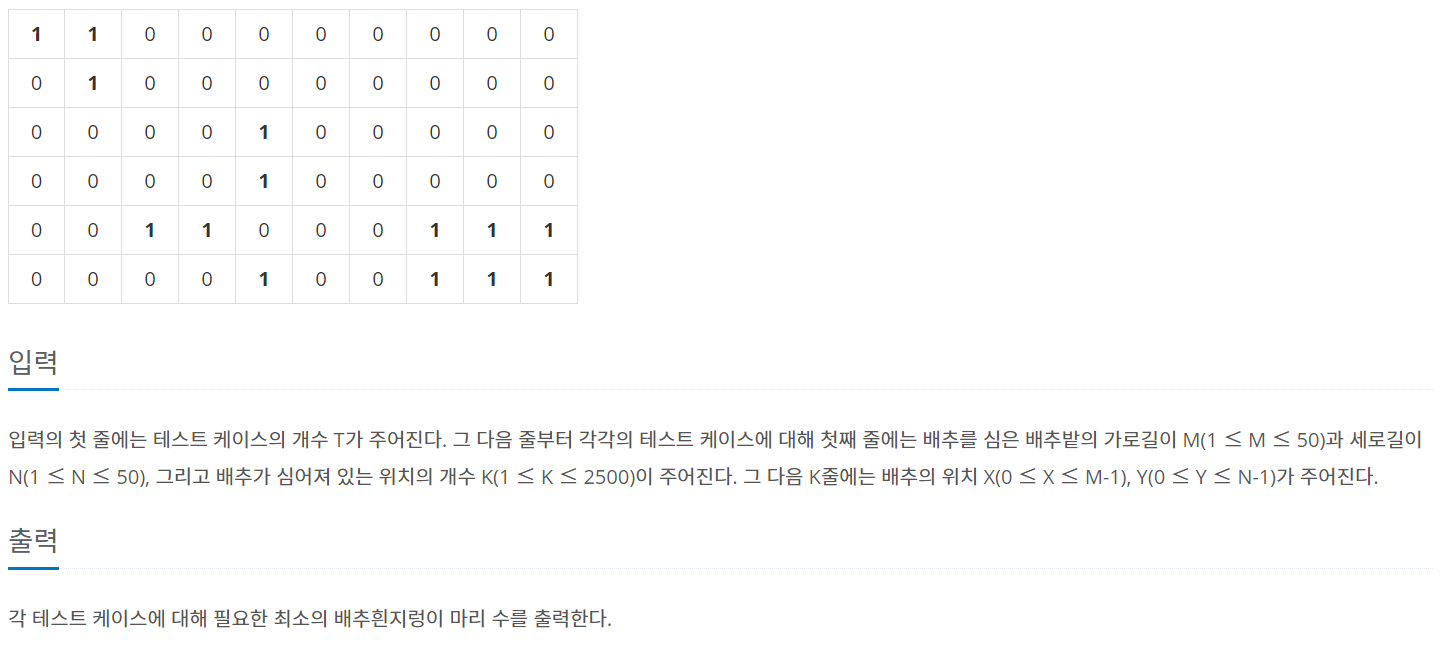 백준 1012번 : 유기농 배추 [C++] 본문