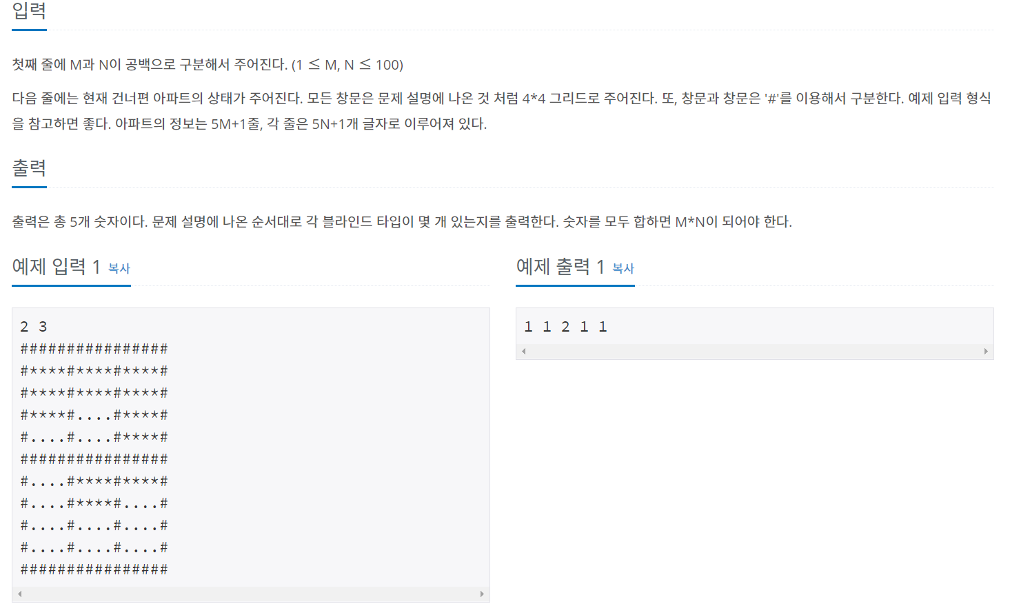 5. 창문이 있는 행을 체크후, 행 밖(다음 창문 바로 윗줄)으로 가기 위해 i+=4를 해야하나, 4번의 이유로 i+=3을 함.