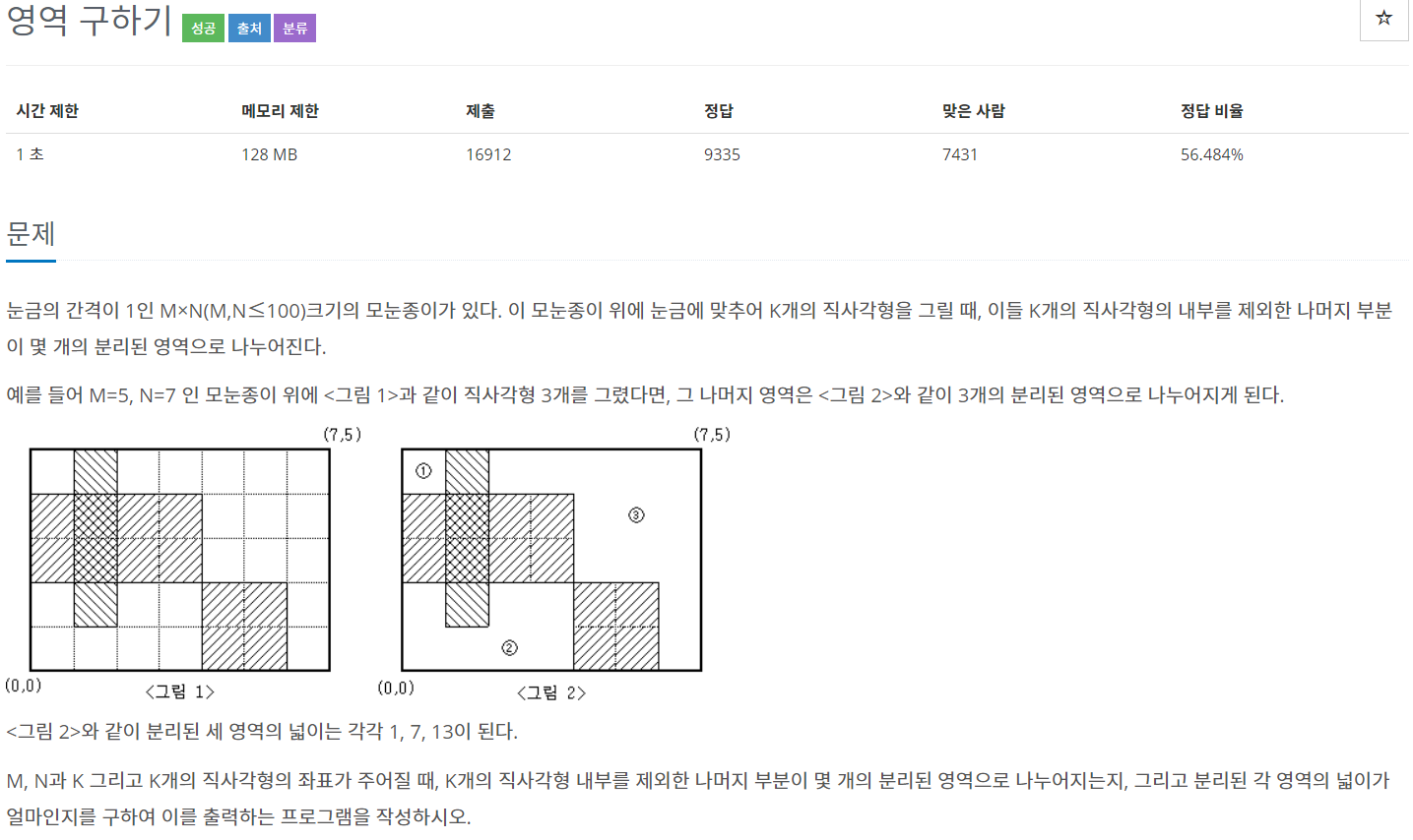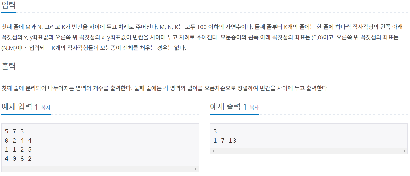 백준 2583번 : 영역 구하기 [C++] 본문