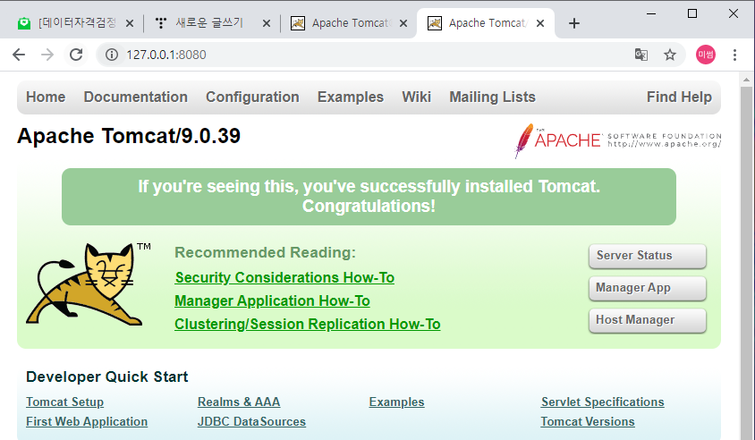 Apache-Tomcat 잘 설치됐는지 확인하기