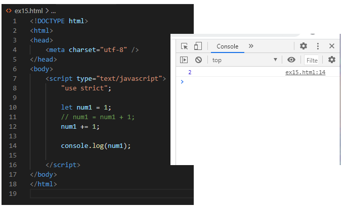 - x = 2; 처럼 선언하지 않은 변수에 값을 대입할 땐 오류가 나지 않는다. "use strict" 사용하면 오류뜸