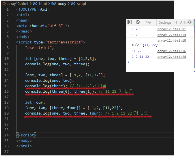 - 이종자료형 : 객체 (지금은 그냥 배열과비슷한데 여러가지 자료형이 섞이는 구나! 만 기억)