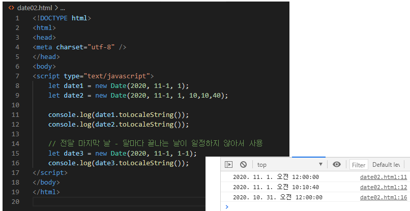 Date(년도, 월, 일, 시, 분, 초) -> 월은 0부터 시작이여서 10으로 해야 11월이 나온다.