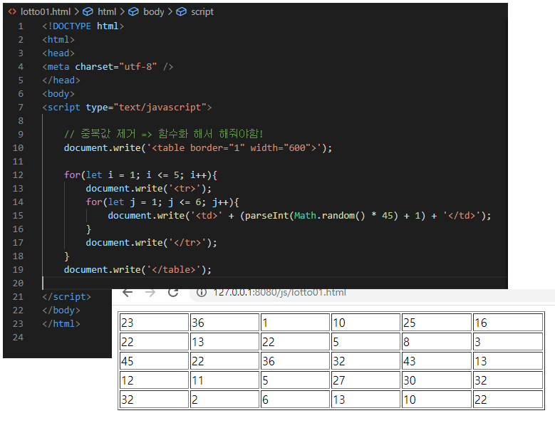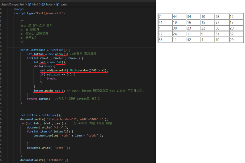 @ 로또번호 나열 구현 ( 중복값 제거 포함된거 아래쪽에 있음)