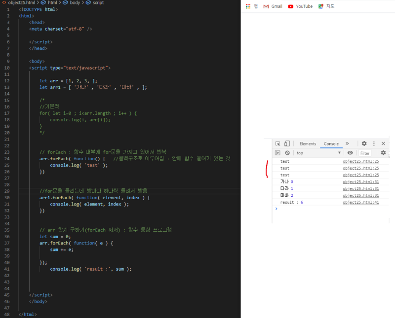 - forEach : 함수 내부에 for문을 가지고 있어 반복