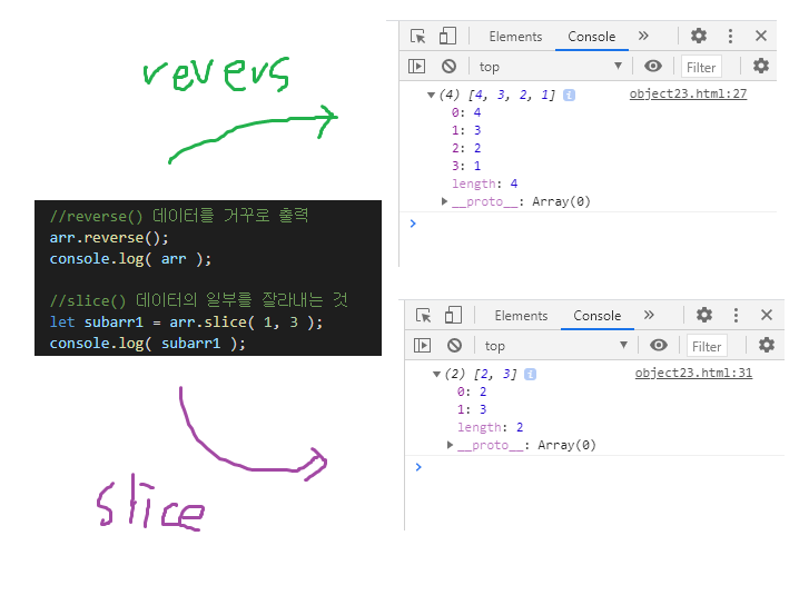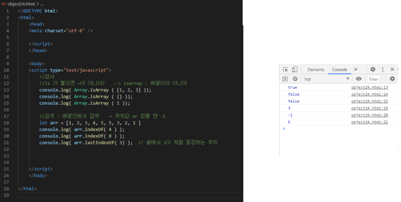 - indexOf( ) : 배열안에 괄호안의 것이 앞에서부터 처음 나올 때의 위치. (없을때 -1 리턴)