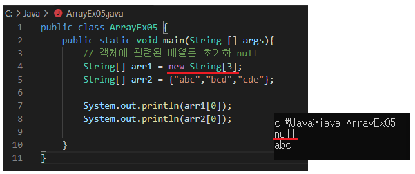 String[] names = new String[lentgh]; // 자동으로 모두 null으로 초기화됨
