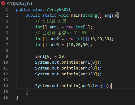 => 자바 역시 동적할당에 new가 쓰이지만 정적할당에선 new가 생략된 형태이다.