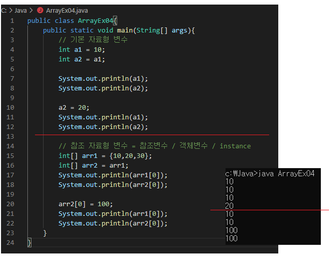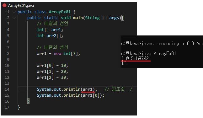 Java : 배열 arr1의 데이터가 저장된 주소 값을 리턴(arr1[0]의 주소)