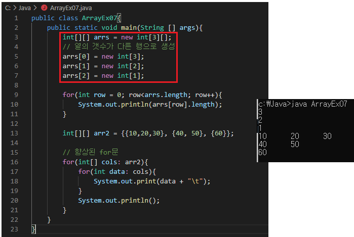 => arr1.length는 3, arr1[0].length는 2가 나오는 이유!
