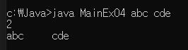 | int lastIndexOf(int ch, int fromIndex) | 해당 문자열에서 특정 문자가 전달된 인덱스 이후에 마지막으로 등장하는 위치의 인덱스를 반환함. |
