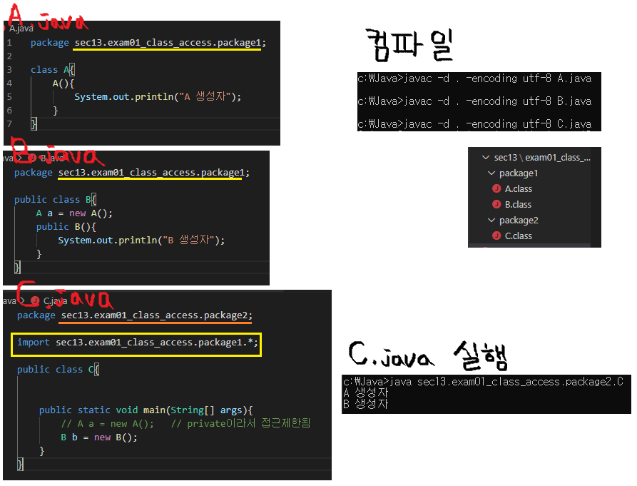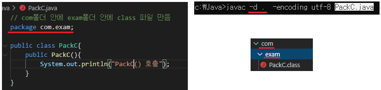 - C:\Java/com/exam> java PackEx02 -> 호출 불가능