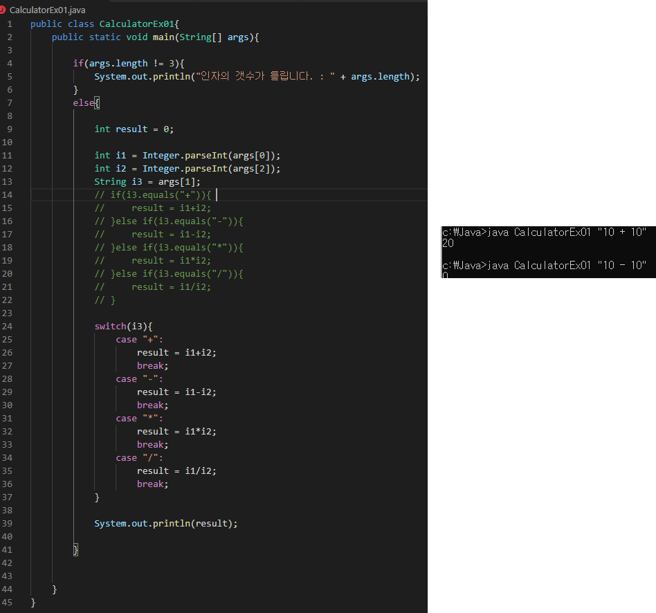 예제 ) 연산식 입력받아서 결과 출력하기 ex. "10 + 10" 입력시 20 출력