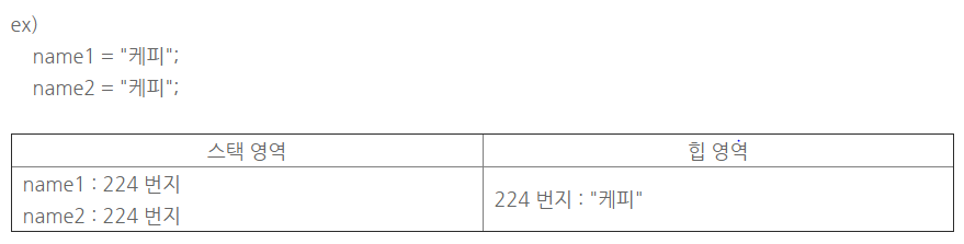 - 문자열 리터럴이 동일하다면 동일한 String 객체를 공유하도록 되어있다.